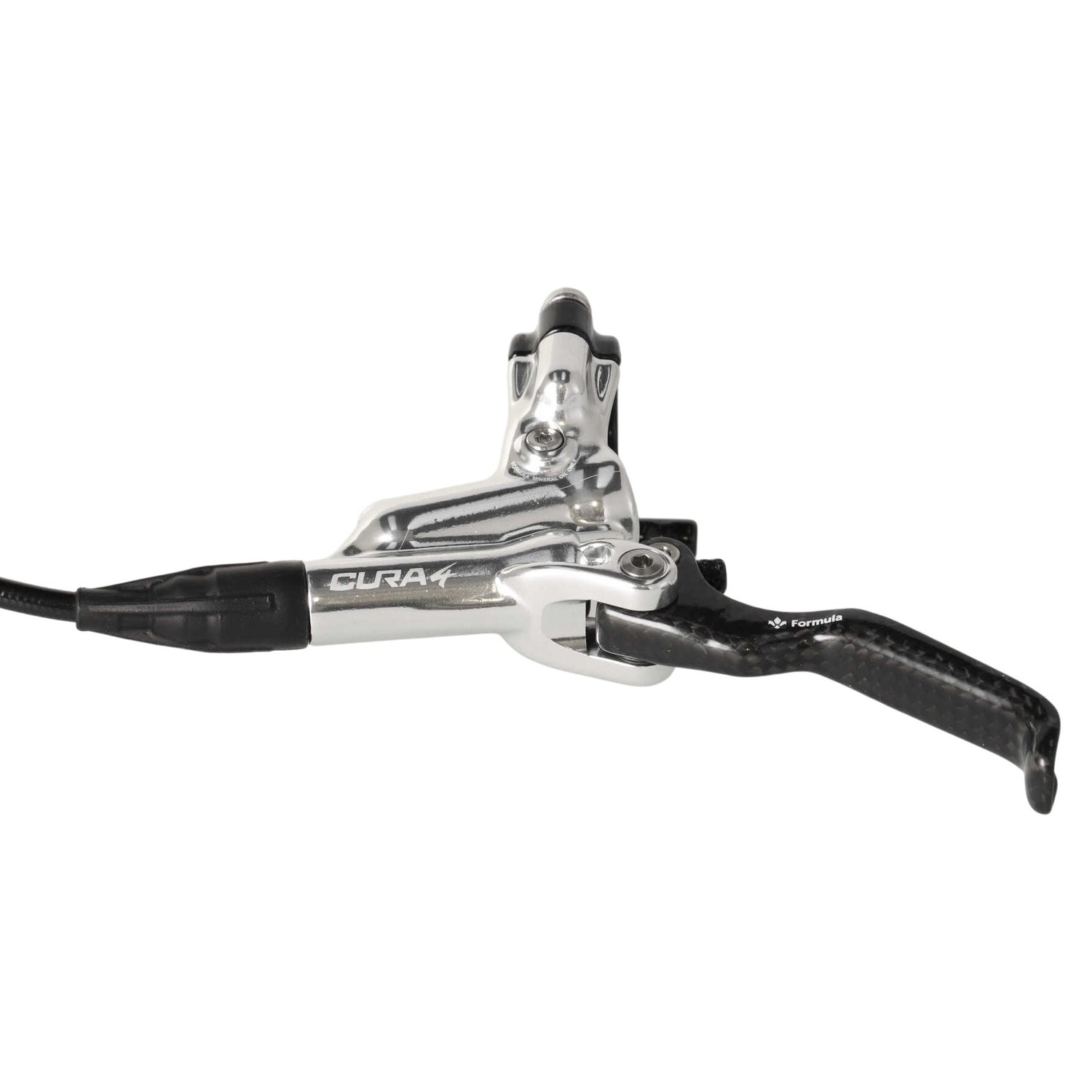Formula Cura 4 Scheibenbremsen-Set | Carbon Bremshebel | vorne & hinten | 4-Kolben | silber | inkl. Beläge | MTB / Enduro