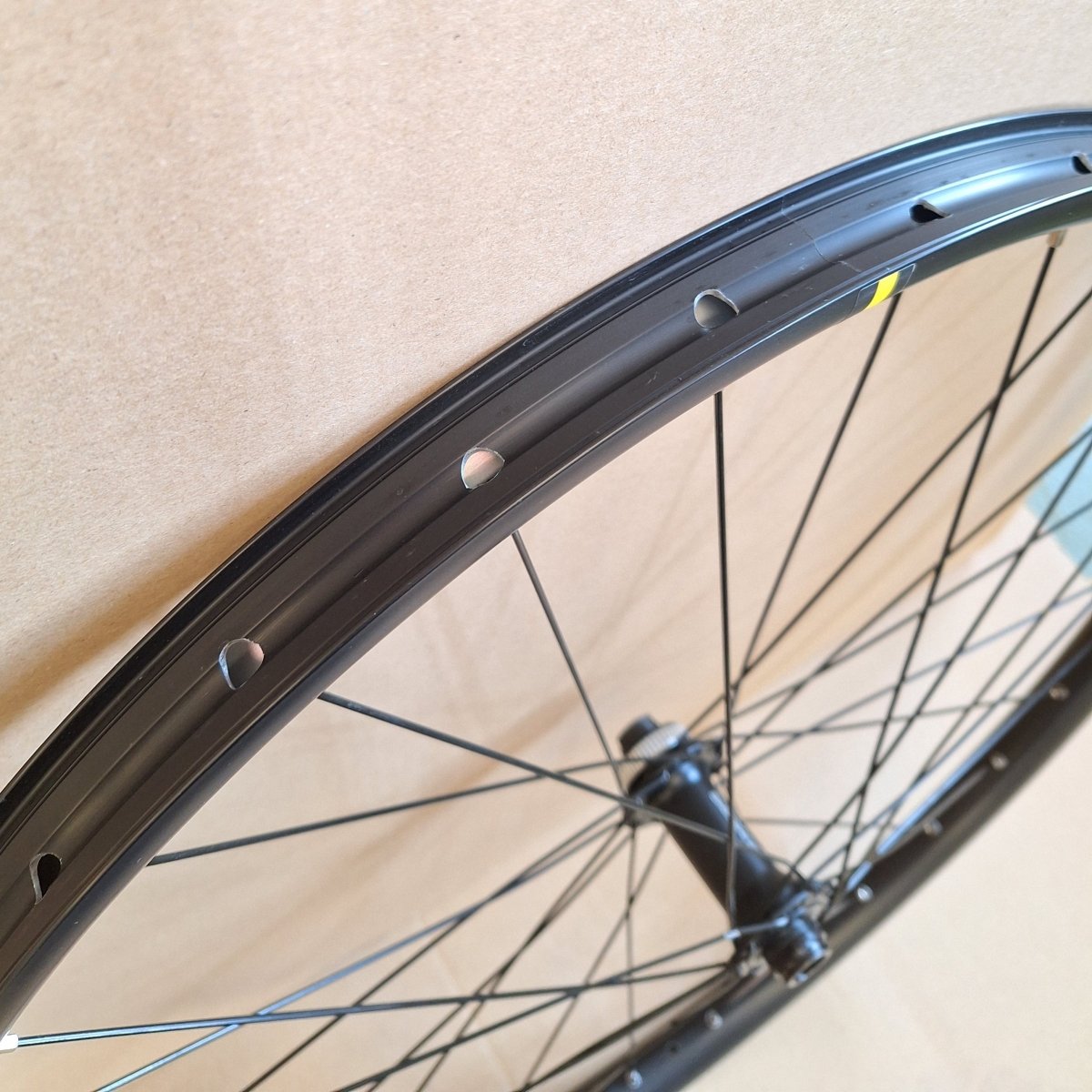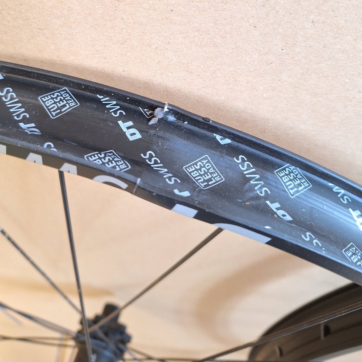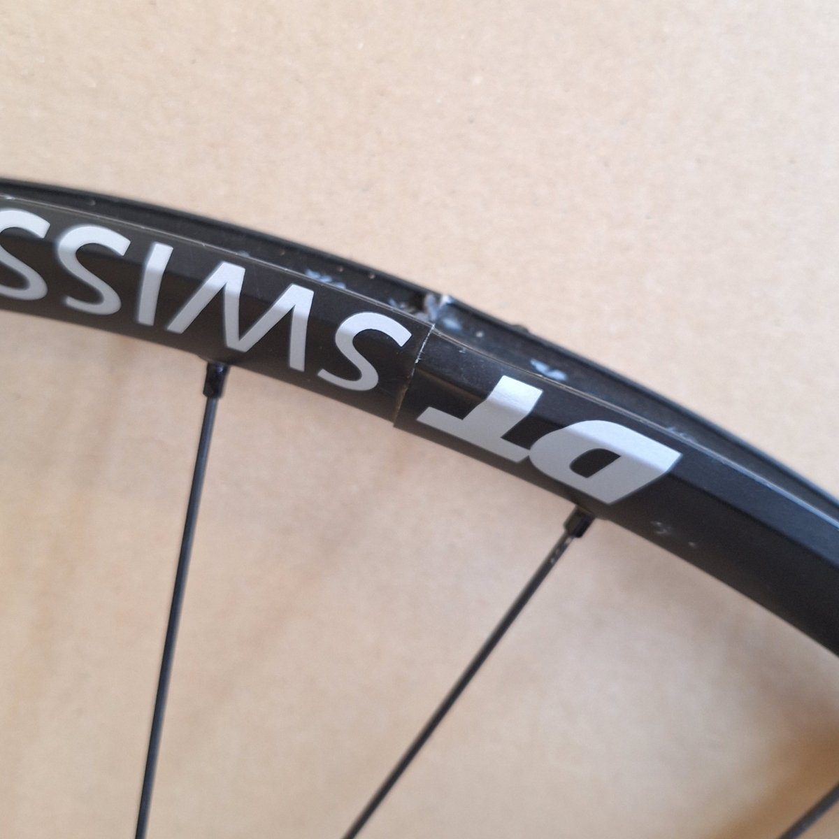 ➡️ Felge hat eine Delle am Felgenstoß. Dadurch ist der Felgenstoß verschoben und Felge undicht. Nicht funktionsfähig. Laufrad wurde nur kurz gefahren. Die Nabe ist einwandfrei. -