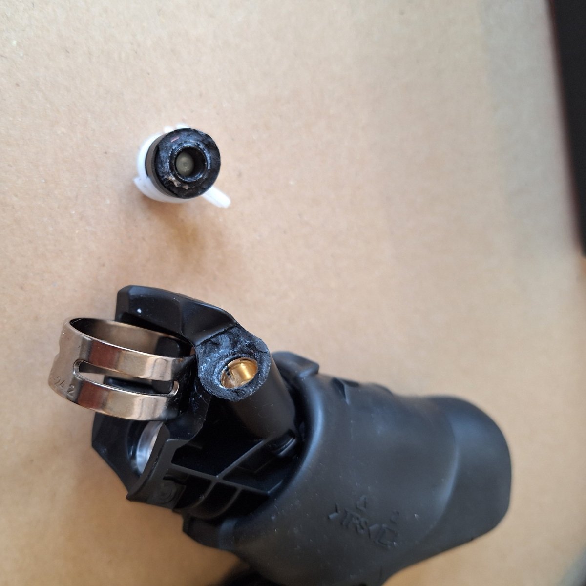 - 1x Shimano 105 STI: Bremsleitungsaufnahme abgebrochen. Nicht funktionsfähig.