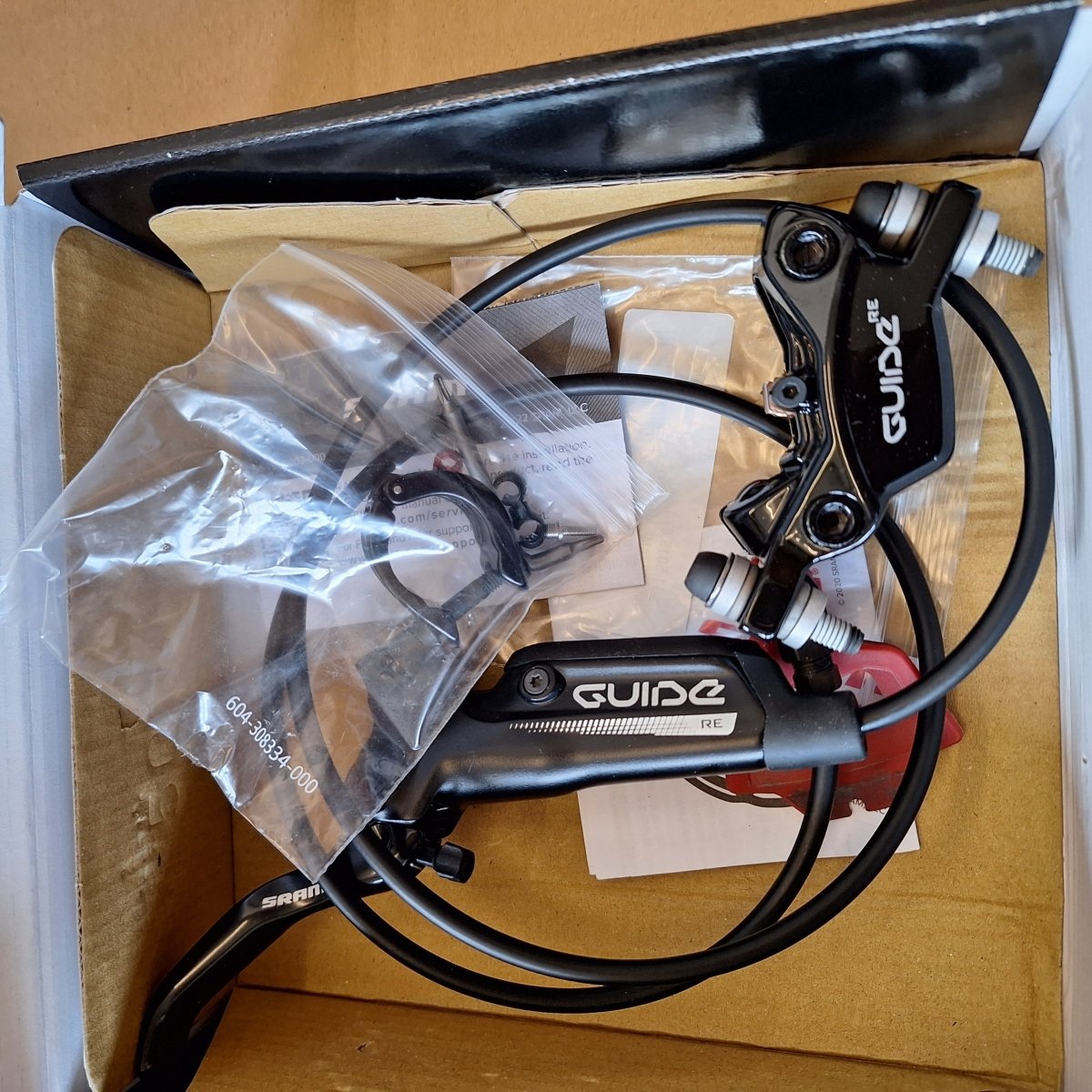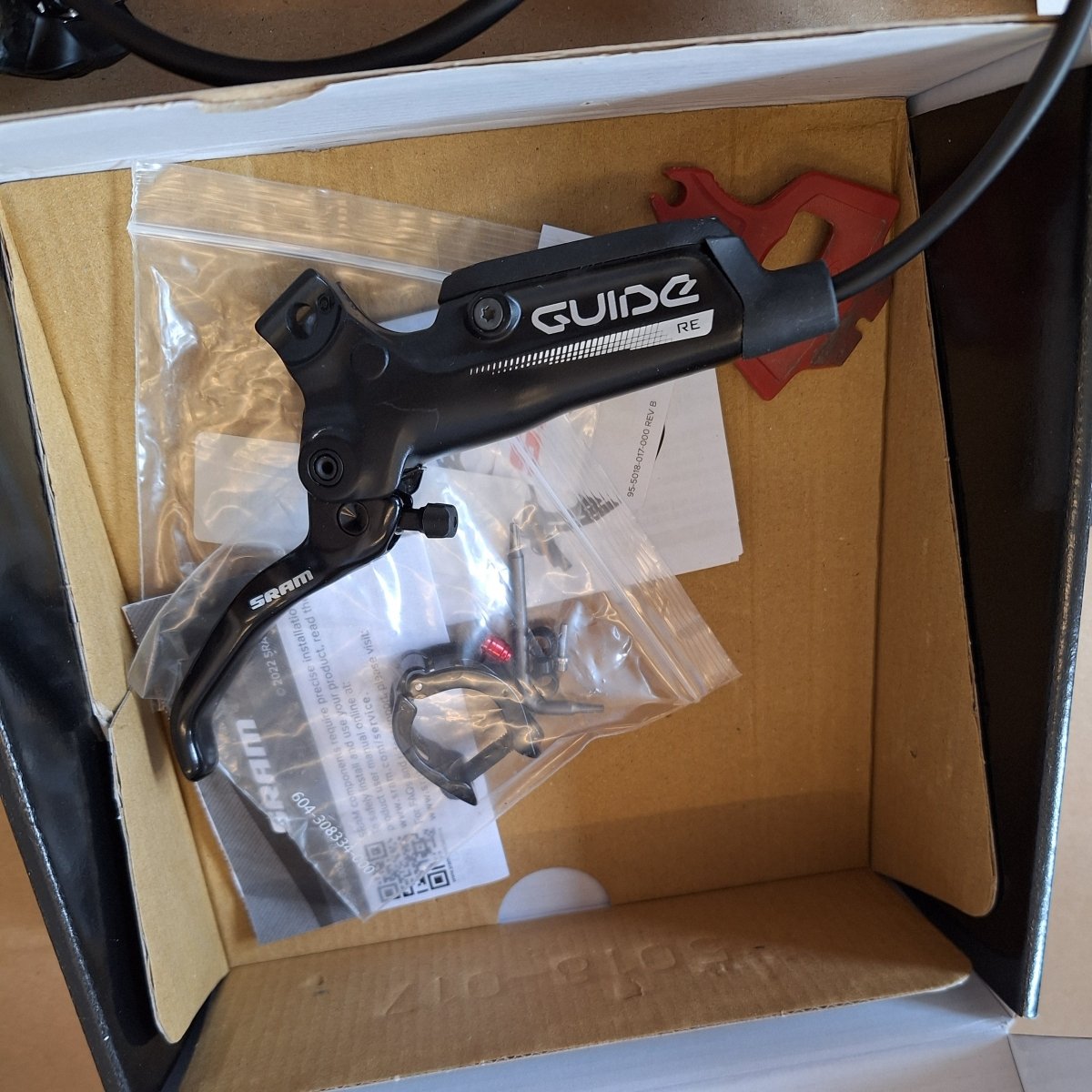 - 1x SRAM Guide RE Vorderradbremse: Aus Retoure. Funktion nicht geprüft. Bremskolben ausgefahren. Kratzer. Inklusive Lenkerschelle und Olive.