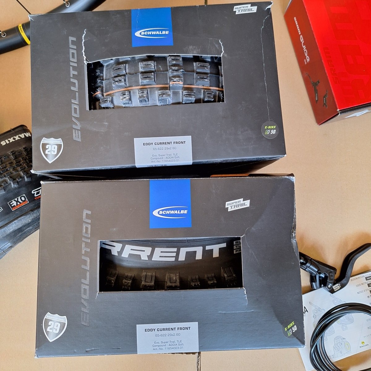 - 2x Schwalbe Eddy Current 29 x 2,6" Front Faltreifen Super Trail ADDIX Soft TLE: Funktionsfähig. Die Verpackung ist beschädigt.